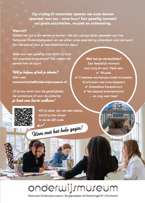 Omdat het tijd is om samen te komen. het zijn roerige tijden geweest voor het Nationaal Onderwijsmuseum en we willen onze waardering uitspreken voor de buurt.