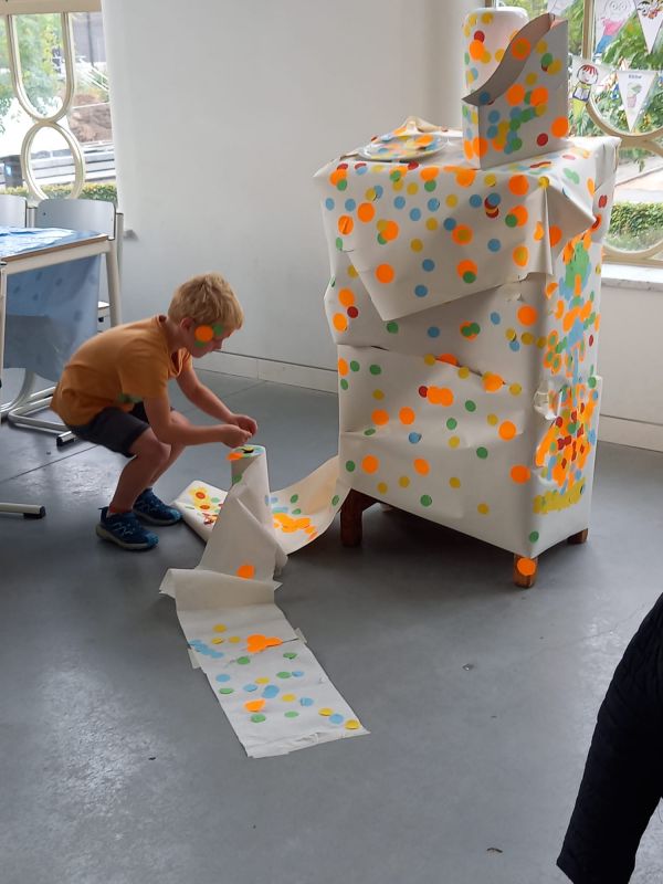 Parcours voor baby's van 9-15 maanden door de tentoonstelling 'boom roos vis'. lees meer