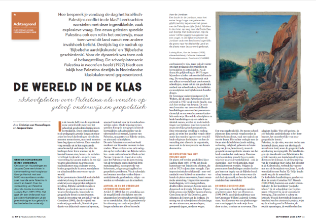 Hoe bespreek je vandaag de dag het Israëlisch-Palestijns conflict in de klas? Leerkrachten worstelen me deze ingewikkelde, vaak explosieve vraag. Een eeuw geleden speelde Palestina ook een rol in het onderwijs, maar toen werd dit land vanuit een andere invalshoek belicht. Jacques Dane en Christian van Houwelingen schreven er een artikel over. Lees het gehele artikel hier.